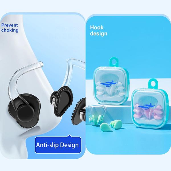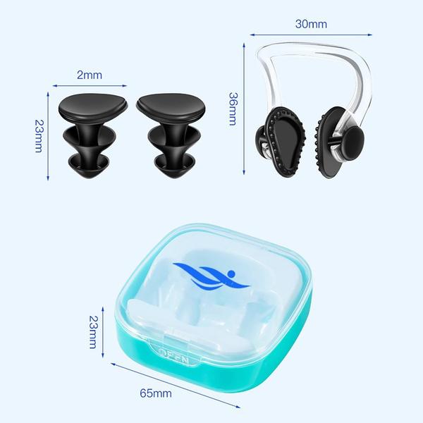 Silicone Waterproof Swimming Nose Clips & Earplugs For Adults Kids Made Of Premium Quality Soft Silicone, And Reusable Waterproof Swimming Earplugs And Nose Clip, Protect Your Ears And Nose From Water Ergonomic Design, The Nose Clips And Earplugs Are Designed In Accordance With Nose Ear Profile Shape Which Can Fit Your Nose Bridge And Ear, It Will Be A Secure Usage Experience Multi-Purpose Use, Not Only The Swimming But Also Can Be Use On Surfing, Sleeping, Reading, Yoga Airplanes Construction Work, Etc